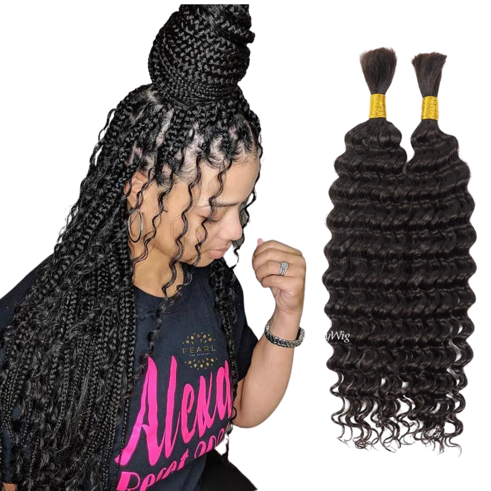 Unprocessed Virgin Deep Wave Human Hair Extensions for Boho Braids. These bundles are a great option for Boho braids, Goddess Faux Locs, Goddess Braids, Micro Braids.